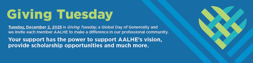 Giving Tuesday Coming Soon - A Day to Make a DifferenceTuesday, December 2, 2025, is Giving Tuesday, a Global Day of Generosity, and we invite each member of AALHE to make a difference in our professional community. Let’s come together to support AALHE’s mission to advocate for, inform, and lead ethical and equity-minded assessment practices in higher education. The Association serves as a central assessment resource that empowers our members to cultivate and improve student learning and institutional quality. We do this by facilitating scholarship and professional development, generating knowledge and resources, and providing networking and idea-sharing opportunities. Your support has the power to support AALHE’s vision, provide scholarship opportunities, and much more. Donate Now through Dec 2