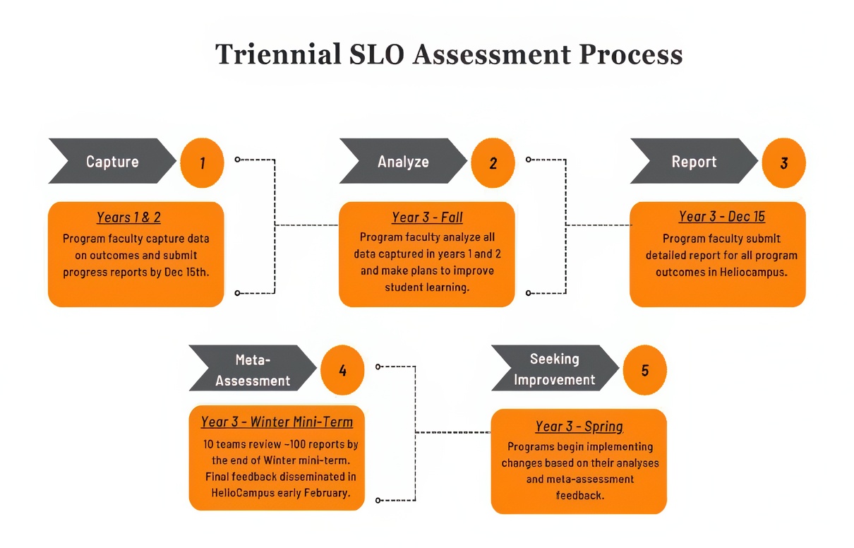 In the world of academic program assessment, there is a commonality to the cycles utilized by assessment offices at higher education institutions. The number and naming of the steps can vary, but the process is the same: program faculty determine student learning outcomes, collect data about student learning as they make their way through the curriculum, and use that information to determine not only how well outcomes were met, but where student learning could be improved moving forward. Using data for continuous improvement is considered essential enough that institutional and programmatic accreditors have incorporated it into their standards. For example, the Southern Association of Colleges and Schools Commission on Colleges (2024) standard 8.2.a and Higher Learning Commission (2024) standard 3.E both explain the requirement for all academic programs to regularly assess student learning outcomes and utilize the data to seek improvement. At the program level, an example can be found with ABET (2023) criterion 4 for the accreditation of computing programs. It specifies the necessity of using results from the assessment of student learning outcomes in the program’s continuous improvement plans. This is not an exhaustive list, but illustrates that accreditors consider seeking student learning improvement to be a key component of academic program quality. When it comes to the frequency of assessment reporting, there is no exact statistic to be found on cycle length. However, it is not uncommon within accreditation reports, assessment journals, and assessment conferences for institutions to describe an annual process. As the name suggests, programs submit reports filled with detailed analyses and plans to seek improvement in student learning each year. The University of Tennessee, Knoxville, starting from scratch with program assessment, implemented its version of an annual reporting process in the 2012-2013 academic year. Though the process had its benefits (e.g., solidified a culture of assessment, provided more frequent evidence for accreditation reports), it became clear over the years that it also presented two key challenges: