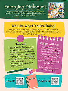 Emerging Dialogues Committee: Coordinates and publishes original or responsive articles that discuss the challenges that higher education professionals face.